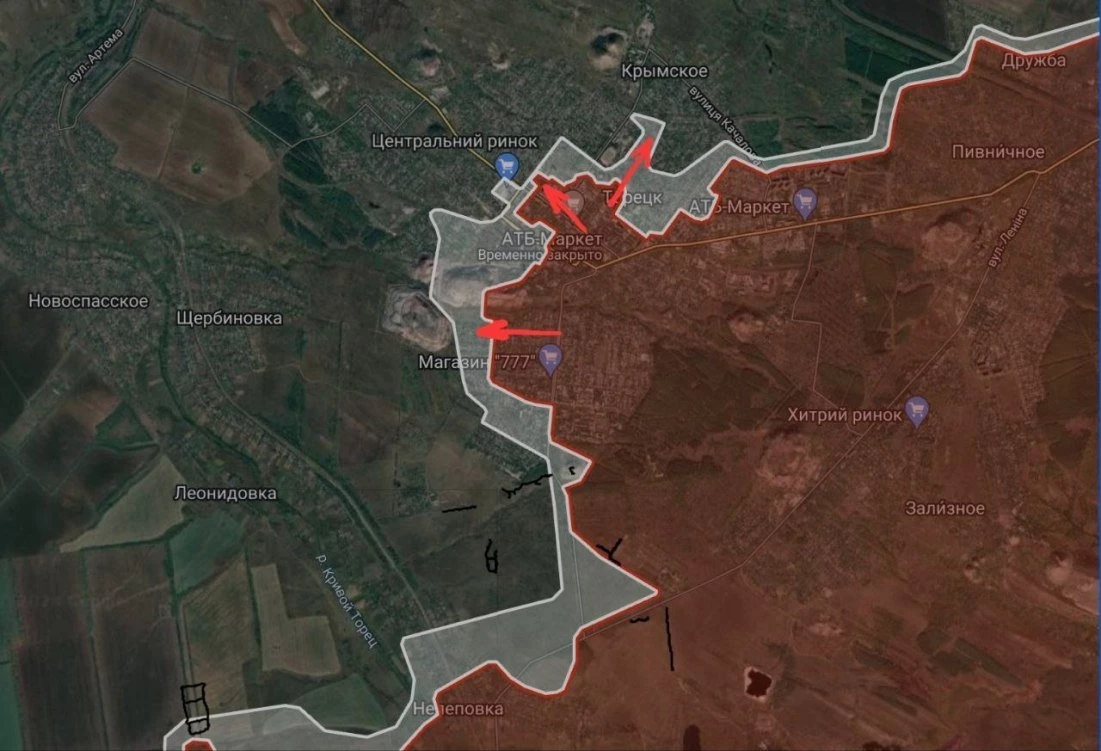 В Торецке продолжаются ожесточённые бои в районе Центрального рынка. Каналы противника подтверждают значительную активность российских штурмовых групп в этом районе.