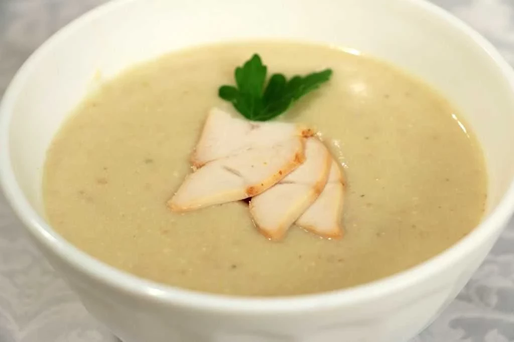 Первое блюдо: Овощной суп с нежирной сметаной.
